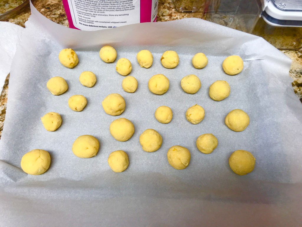 After making and chilling the dough, I tried to be pretty precise with how much dough I was using per ball by measuring down by 7-8g with a scale so that each ball was the same weight. One tip that I learned is to wait for a little bit to let the dough come more to cold/RT so it is easier to form. Trying to shape chilled dough into balls was painful.