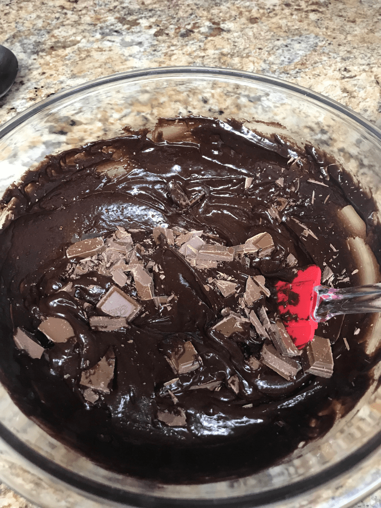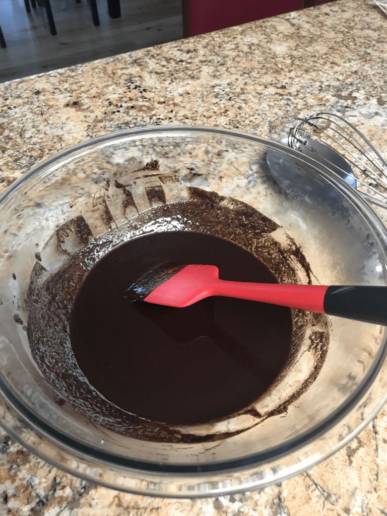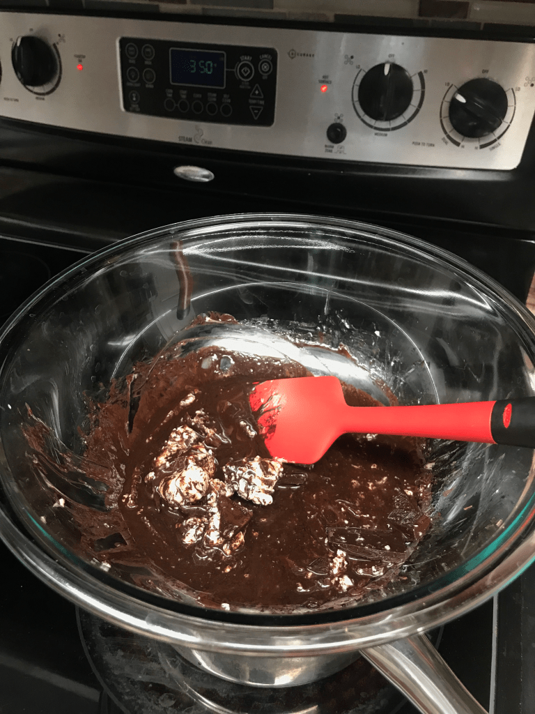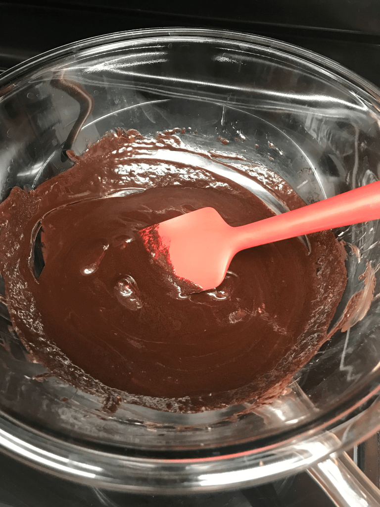 Anyway, the first thing I noticed about this recipe is that you have to temper the chocolate. Nothing wrong with tempering, it’s just a little finicky. I forgot that things like tempering chocolate need to be babysat, which is how my first batch of melting/tempering chocolate ends up seizing and clumping into one grainy mess. This required a little bit more finesse than Stella’s brownie recipe, which called for me to directly add chocolate into the saucepan.