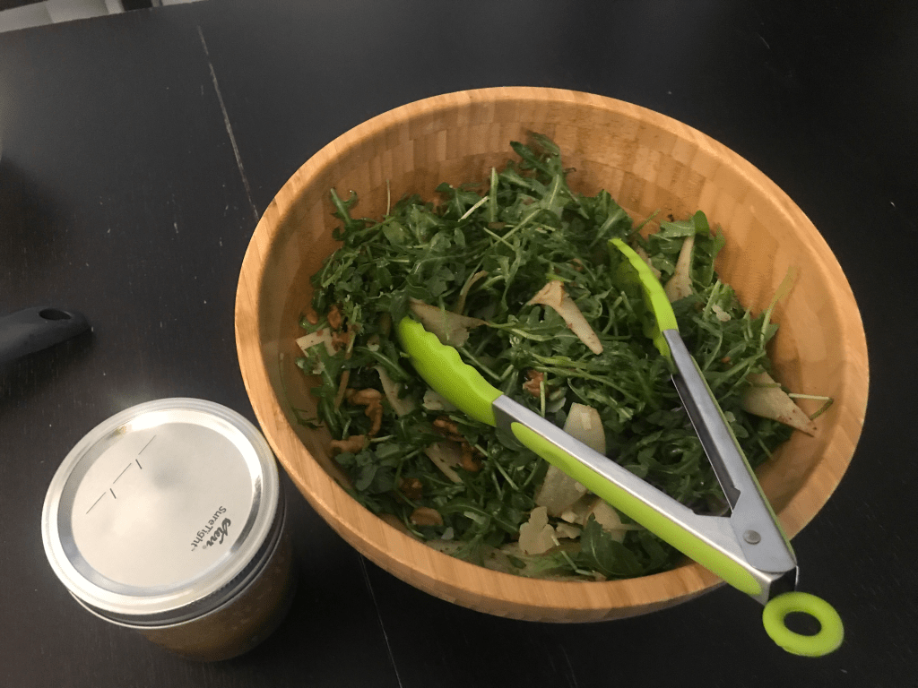I was also able to make the pear arugula salad that I’ve made in the past as an obligatory vegetable side. Overall, I’m really happy with this dinner.