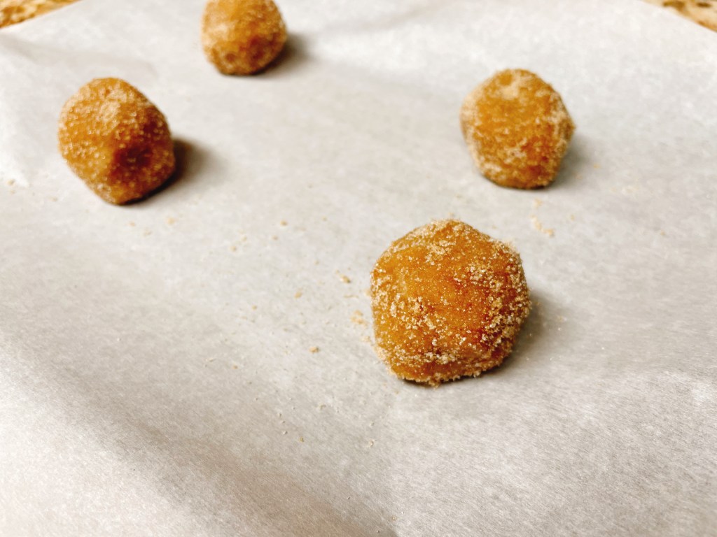 I rolled up the dough in 2-tbsp balls and rolled the balls in the brown-granulated sugar mixture. It reminded me of snickerdoodles, except there wasn’t any cinnamon involved.