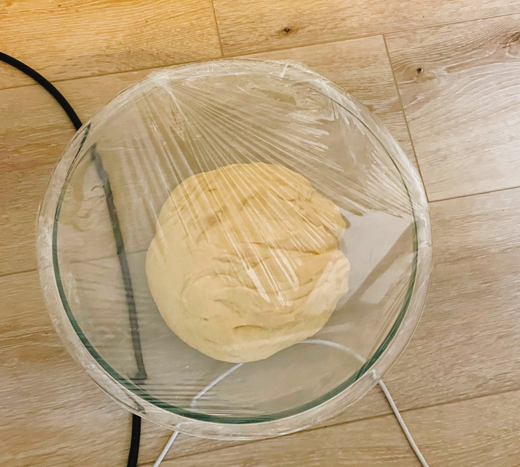 I then tried to form the dough into a ball but it sort of took a more amorphous shape into the bowl that I put it in to rise. I then let the dough have its first rise over the course of an hour before putting it in the fridge.