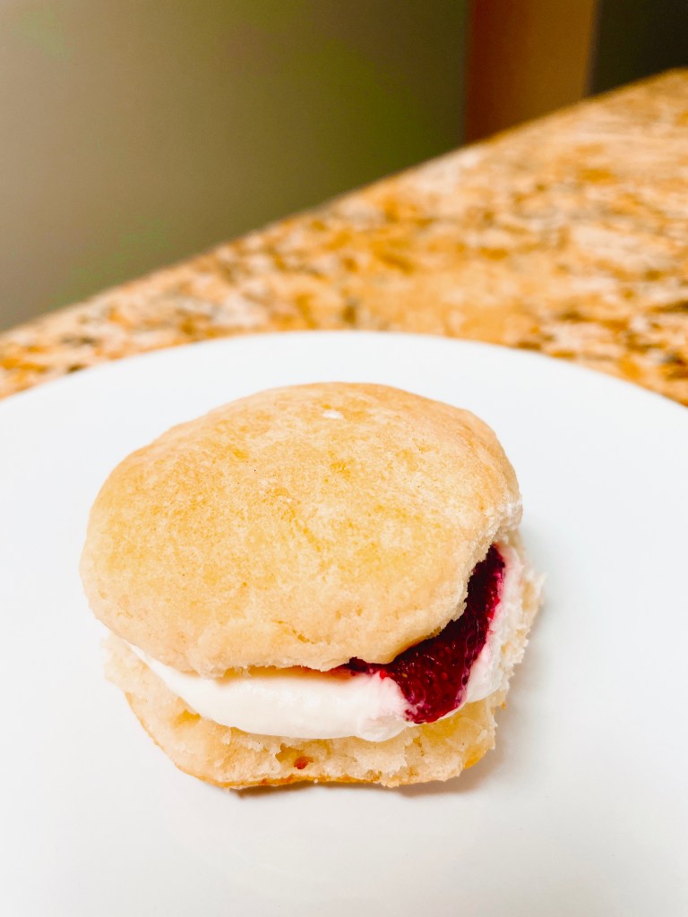 Overall the taste was pretty good, a very simple and straightforward dessert to make. The biscuit was buttery/rich, had layers and a crispy bottom. The strawberries didn’t taste overly sweet and was balanced with the whipped cream. It was like eating a sweet mini-slider. I could imagine making this as a quick dessert option.