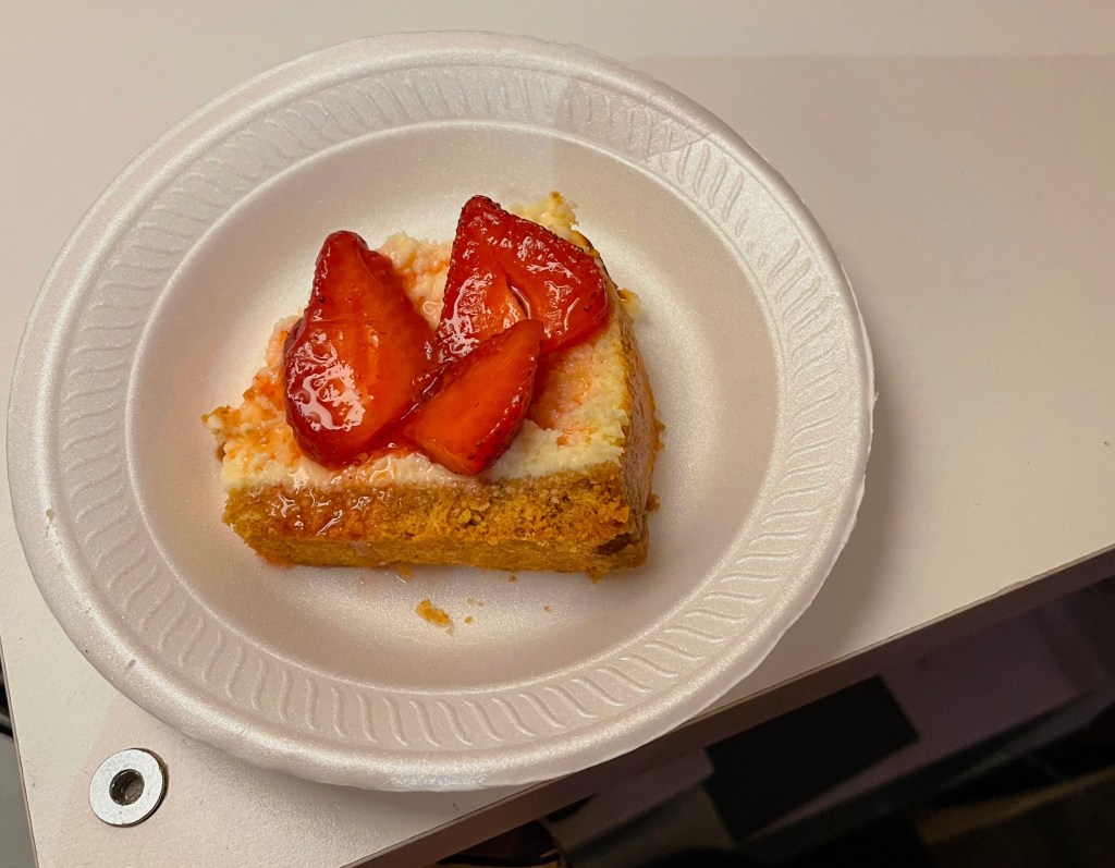 I ended up serving this cheesecake to the students in my youth ministry group, who seemed to have enjoyed it, judging on them quickly cleaning the platter. The taste was quite pleasant, where it wasn’t too pungent or tangy from the cheese. It tasted more on the vanilla and mellow side. It tasted amazing when paired with the sliced strawberries as a topping. I was relieved to see that the graham cracker crust did not crumble apart and stayed together. One curious thing that one of my friends noted was that there was a sort of grainy texture with the cheesecake. I’m not sure what would cause graininess but I figure it was related to the fact that the cream cheese I’ve used was frozen for a bit of time. These are only things to note for next time.