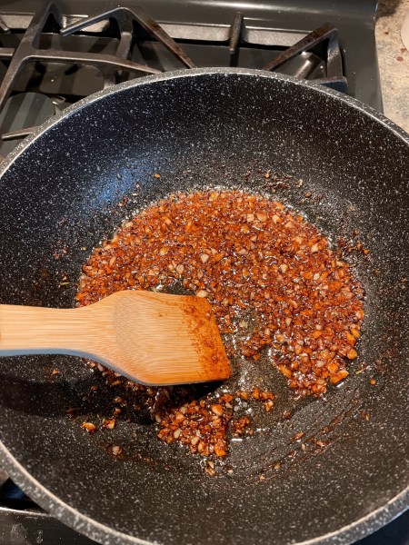 The best thing about this recipe that it can be easily made using seven pantry essentials in your house in about 20 minutes–nothing fancy required, which made it perfect to make for a last-minute Friday team dinner potluck with the theme, “things in your fridge/freezer.”