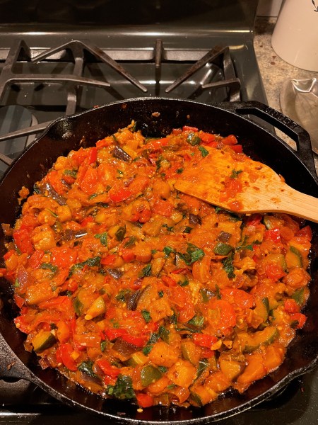 Since it was my turn to make DT breakfast, I decided to try to make something that could use up a lot of the leftovers in the fridge. I also wanted to do something a little different and revisit something that I’ve made in the past. So I made ratatouille-shakshouka toast, mostly by referring to this recipe as well as this one. It’s probably more ratatouille-ish than shakshouka-ish but whatever I made, it is still the bastard child of both dishes re-purposed for this breakfast. I’m actually a bit proud of this one because I was able to: 1) repurpose the leftovers of this breakfast for my lunch over multiple days and 2) clear out a good amount of odds/ends of other stuff in the fridge, which include but are not limited to: