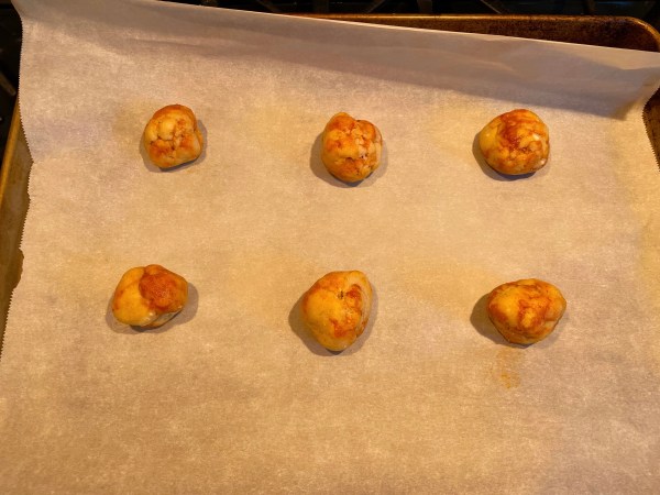 Nevertheless, I pressed on and rolled about 12 balls worth of cookies and placed them on the baking sheet, baking them in two batches, 6 balls each. After around 10-12 minutes, each batch was finished and I waited for each batch to cool down for about five minutes.