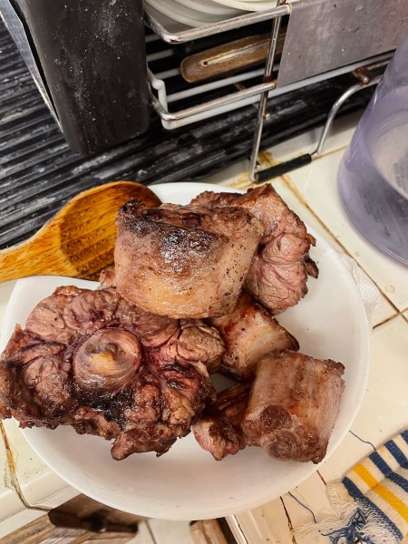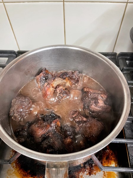 This jus is so good. The recipe said to toss out the veggies used for stock but even those were packed with flavor. Just wow. This is probably one of the best gravies I ever had in my life. I could taste hints of the wine but with rich, beefy undertones. Oxtail bones were definitely the way to go in infusing the jus with enough gas to get to Flavortown. You could dip anything in this and it would make it taste amazing.