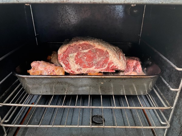 So, I actually got a boneless prime rib roast, instead of bone-in. One of the advantages of bone-in is that the bone has a higher thermal resistance than meat so any meat that is directly adjacent to the bone would cook even more slowly, leading to more flavor and tenderness. Oh well.