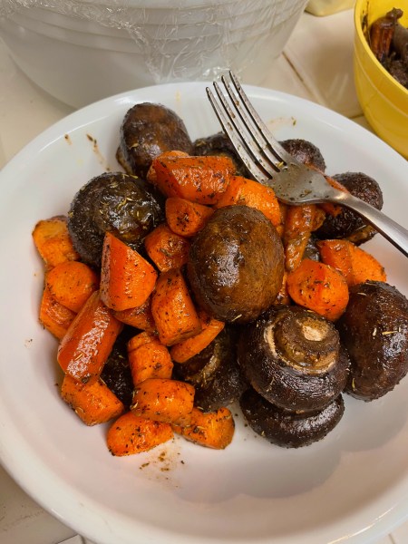 - Roasted Mushrooms and Carrots: Toss in thyme, salt, and pepper, roast at 425F for like 20 minutes.