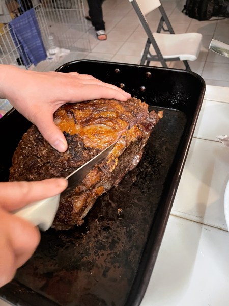 After letting it rest for another few minutes, my mom helped me slice up pieces of the roast. With some nervousness of what it would look like, I braced myself.