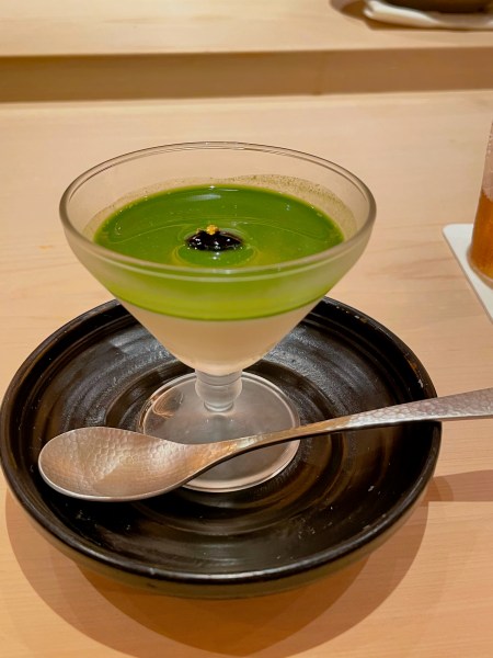 Something that I learned was that you can eat sushi with your hands. They give you a small warm towel to wipe your hands with after eating what they serve you. Another discovery I made was that true wasabi was pretty subtle and not supposed to be pungently burning. They served us about ~16 pieces of sushi. My personal favorite was probably the charred seabass and the dessert they served to round up the meal, which was a matcha coconut pudding. The coconut pudding was especially good, very lightly sweetened with a strong matcha taste.