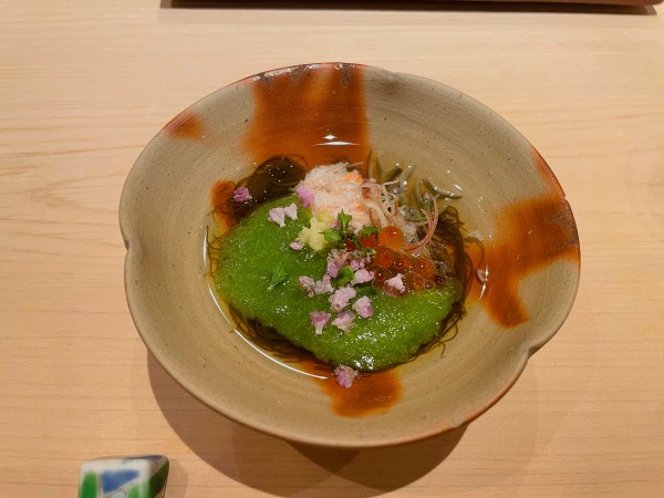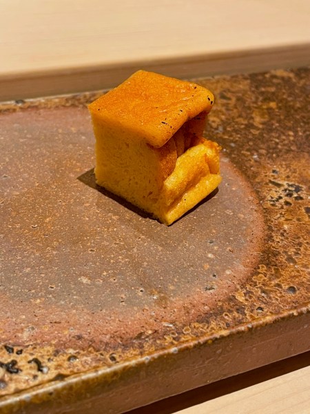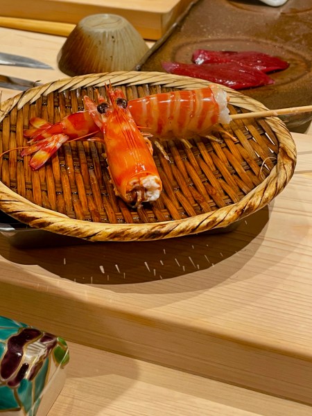 As a final gift to my mom, I wanted to treat her to something that she has talked about wanting to try for awhile—omakase. While we were on a bit of a tight schedule, since the only available spot was open at 5:00PM, we made it just in time to the restaurant, which was called, “Ginza Onodera Sushi.” The reservation for an omakase dinner was held in a separate private building. It was a bit of an experience to sit at the counter and watch the food being made.