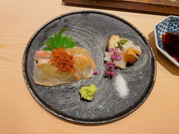 It was a quiet 1.5 hour dining experience. Since the chefs didn’t speak English, they hardly spoke with us. It was a bit mesmerizing to see how precisely they cut even the small things like ginger. Each time, they would serve us a small dish, usually accompanied with a picture and description on an iPad depicting what sort of fish they were serving to us.