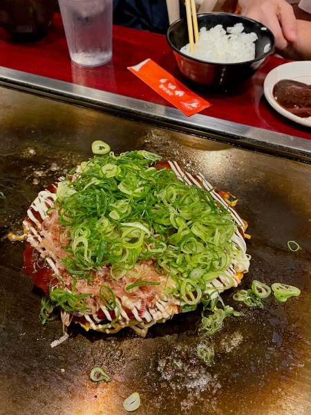 After meandering around, which included visiting a pig cafe, we had dinner at an okonomiyaki place, which I vaguely remember being something I really liked eating in Osaka last time I visited. My mom was a little wary because she didn’t like the sauce but she was willing to eat it. The okonomiyaki was sweet and savory, a very satisfying pancake to eat. It was especially cool to see it being cooked before my eyes on the grill.
