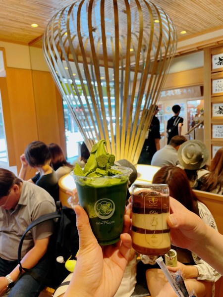 The next day, we ended up traveling to Gion and visited a series of places–from temples to Sanmachi. One place that I was especially excited to visit was Gion Tsujiri, for its matcha products. I got myself a nice matcha sundae and a hojicha latte cake to eat on the side. The matcha was soooo smooth! I liked that it wasn’t super sweet and had this mildly grassy/earthy taste that I really liked. The saleskeeper also showed me how to consider different types of matcha powder and their umami flavor. It was really cool!