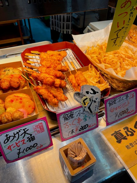 The next day, we went to Kuromon Market and shopped at different food stands. One notable one was eating pufferfish sashimi, which wasn’t planned but definitely would be something on my Japan bingo card. In addition, we ate other grilled items, other sushi, and filled up for lunch.