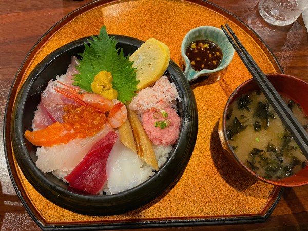 For dinner, we found a small seafood restaurant since we heard that Kanazawa was know for seafood. I had a pretty solid chirashi bowl and this glass shrimp Kakiage tempura!