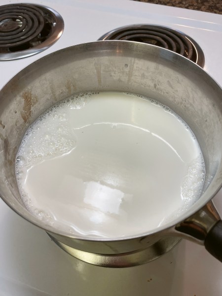 While this worked for some of the jars, others failed to show a milk skin after about a 20-minute cooling period. My theory was that there were too many small bubbles in the heated milk so that skin never had the chance to form or maybe I agitated it too much.
