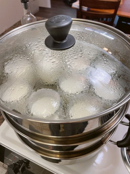 If I were to repeat this (which I might based on how cheap this was to make), for the sake of time and convenience, forgo the tedious milk skin formation step and go straight into mixing the heated milk with the sugar-egg white mixture, treating this process like how I make custard. Strain that mixture, then add that to the jars. Then steam it for 25 min on medium heat and 25 min rest in the steamer. Trust that the milk pudding may look liquid-y but it is enough time for it to steam.